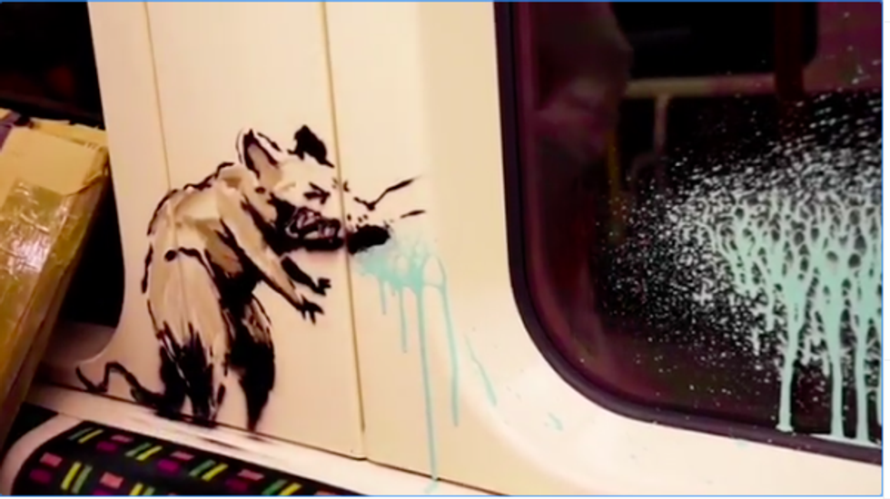 Banksy used his famous rats to show the importance of face coverings and hand washing during this pandemic. One of the rats is shown sneezing with droplets on the window and others are being lifted up by masks. At the end of the video outside the train says "I get lockdown" and the inside says "but I get up again" which is an inspiring and comical reference to the 1997 song "Tubthumping" by Chumbawamba.