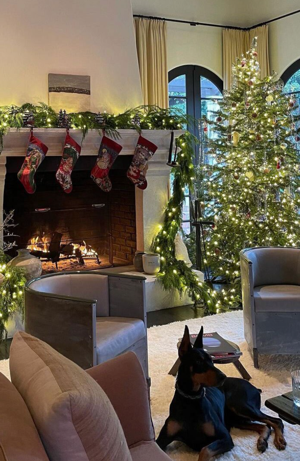 Simple and classic, Kendall Jenner keeps her's close to the fireplace- stockings hung with care.