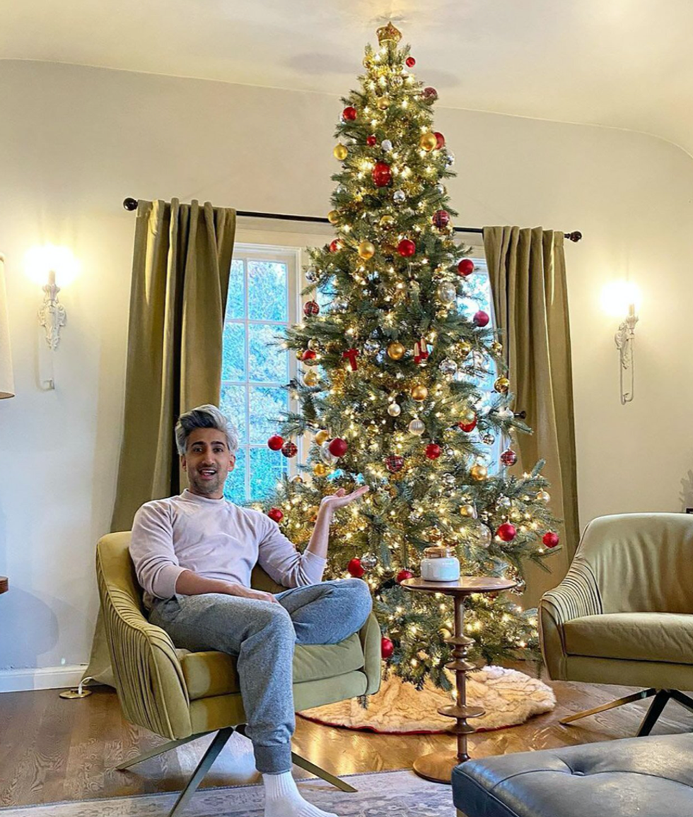 With classic and elegant decor, Tan France's tree still stands out with its great height.