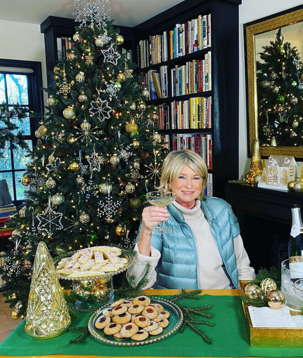 Martha Stewart really leans into the green with accents of silver and gold.