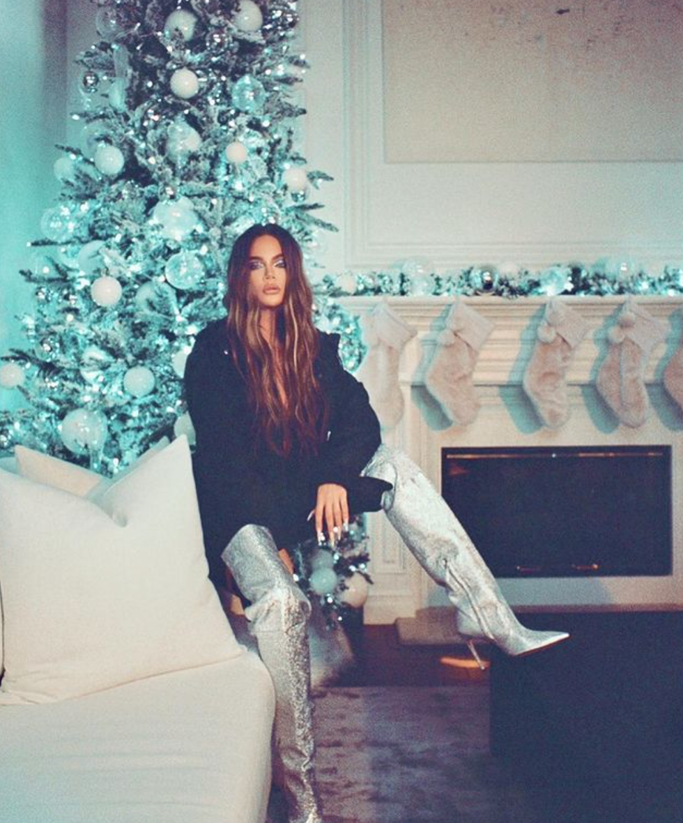Khloe Kardashian embraced the pop of color with a wintery blue tree that is sure to give you chills.