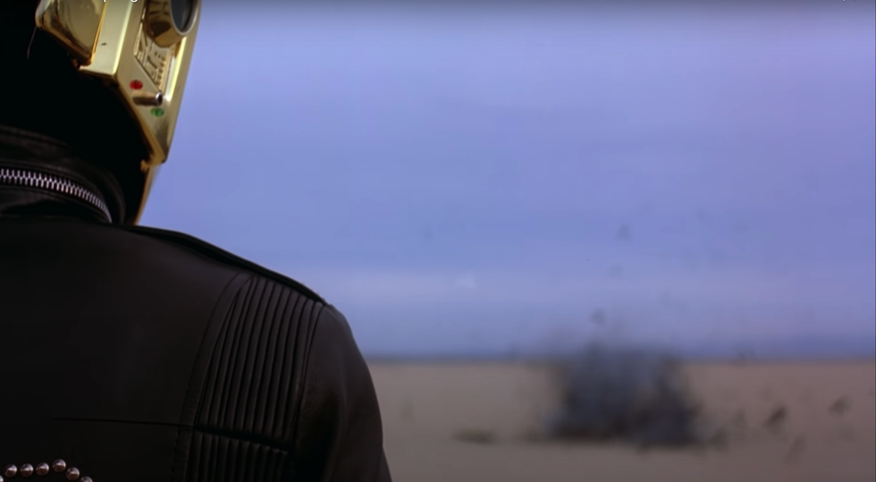 The one left can't do anything but walk away in either the sunrise or sunset, leaving a clear message to all the fans that have accompanied them for all these years - whether it's a new beginning or a full on goodbye, the music that Daft Punk have made is meant to stay.