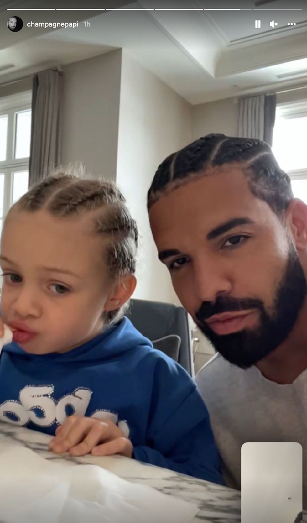 Drake has a mini-me! After debuting a braided hairstyle last week, Drake gave fans another glimpse at the new look on his Instagram Story Tuesday — this time sharing a selfie that included his son, Adonis, 4, rocking the same hairstyle.