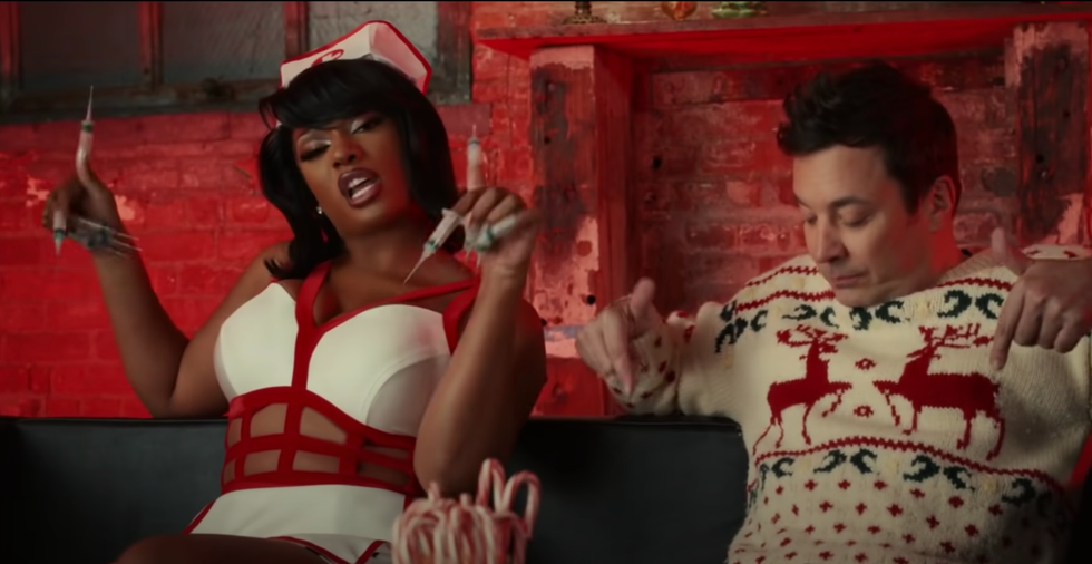 ... It's Megan Thee Stallion's moment to shine. While wearing a nurse costume she sings: