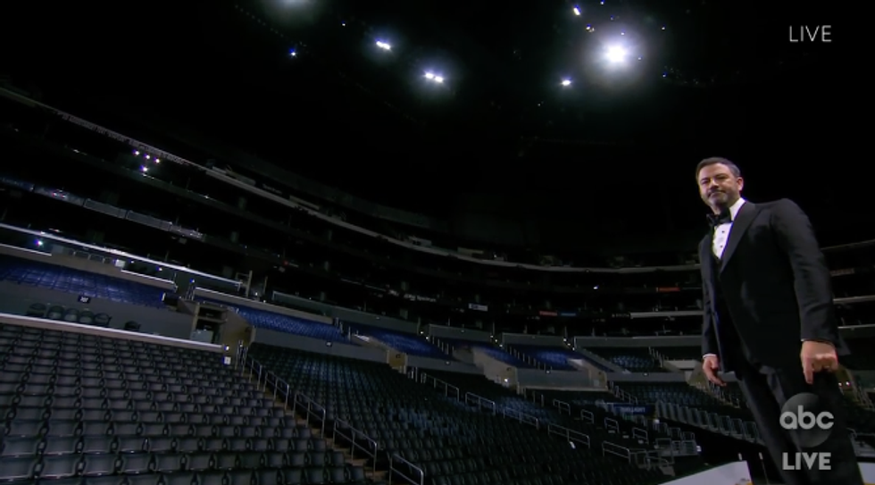 Kimmel kicked off the show with a classic opening monologue! He teased the need for an Emmy Awards during a pandemic while also celebrating the need for comedic relief. Viewers were confused at first to see a packed audience present for the event. Halfway through, however, it was revealed that Kimmel was editing in clips of audiences from past years. At one point, he even cut to himself laughing in the audience from a previous Emmy night. The one person who WAS in the audience was Jason Bateman who joked that he wanted to "eat shrimp with the cast of The Crown.