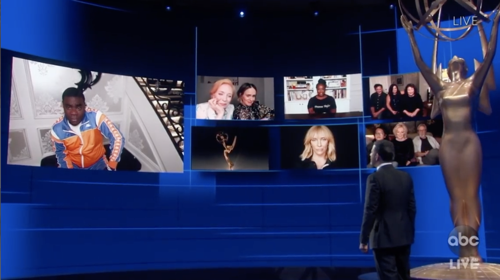 While presenting the award for Outstanding Supporting Actress in a limited series or movie, Kimmel noticed something a little off. Turns out Tracy Morgan was filling in for Tracey Ullman's zoom feed. According to Morgan, "Tracys stick together."