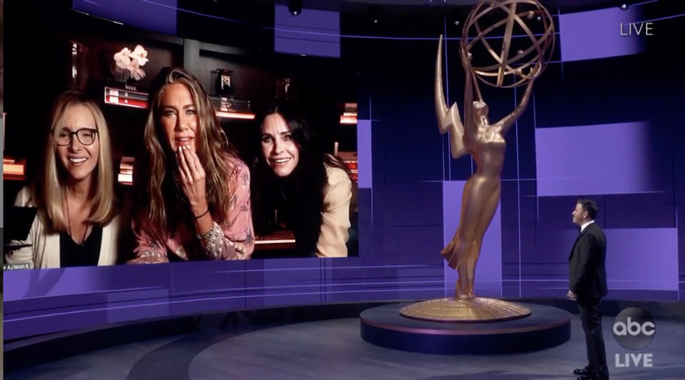 After sending Jennifer Aniston home earlier in the show, Kimmel checked in with her through a zoom call. Come to find out, Aniston was in good company. Courteney Cox and Lisa Kudrow joined Aniston for an at home Friends reunion. The group jokingly stated they never stopped being roommates.