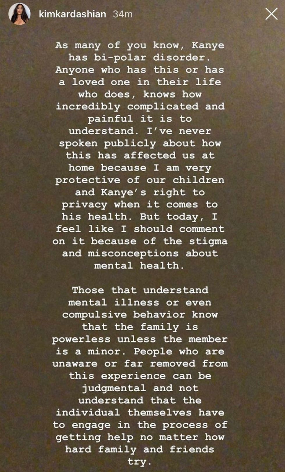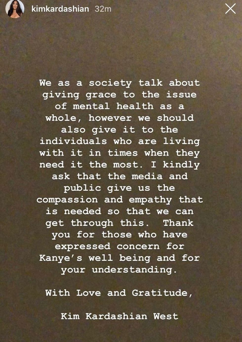 KUWTK star Kim Kardashian West has never publicly addressed her husband Kanye West's mental health situation like she has today. In an Instagram Stories post, Kardashian West released her statement regarding her Kanye's current state.