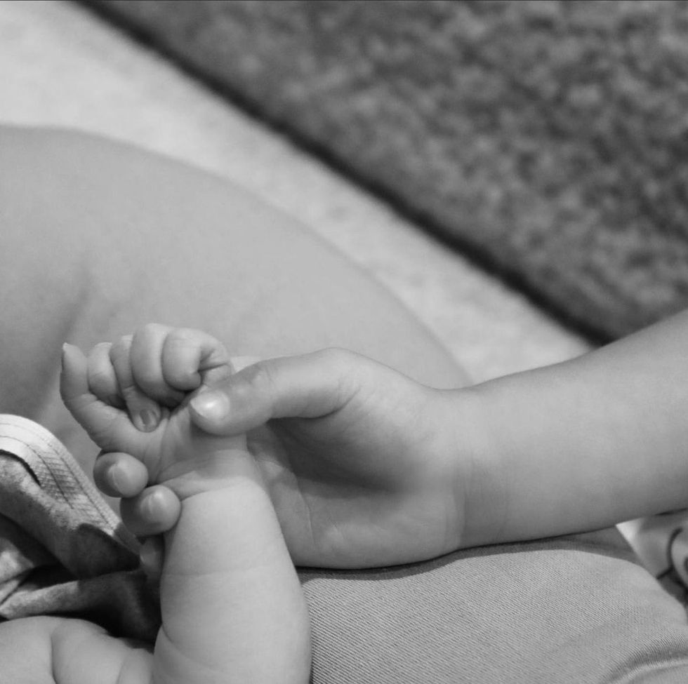 The Keeping Up With the Kardashians star wrote on Instagram, "2/2/22" alongside a black-and-white photo of the pair's daughter Stormi Webster holding the newborn's hand. The proud mom did not reveal the baby's name but did include a blue heart emoji.