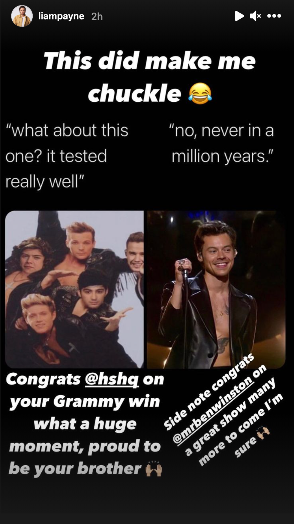 Although One Direction split in 2015, Payne has never failed to congratulate Styles on major accomplishments. Styles' fellow group members (Louis Tomlinson, and Niall Horan) have yet to congratulate the now Grammy winner, but the day is still young.
