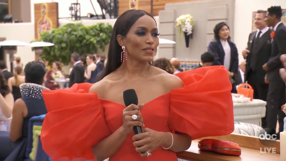 Black Panther star Angela Bassett took a moment to remember the late Chadwick Boseman, who is nominated for Best Actor tonight.