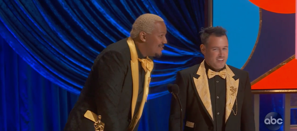 Filmmakers Travon Free Martin Desmond Roe take home the award for Best live Action Short Film for Two Distant Stangers.