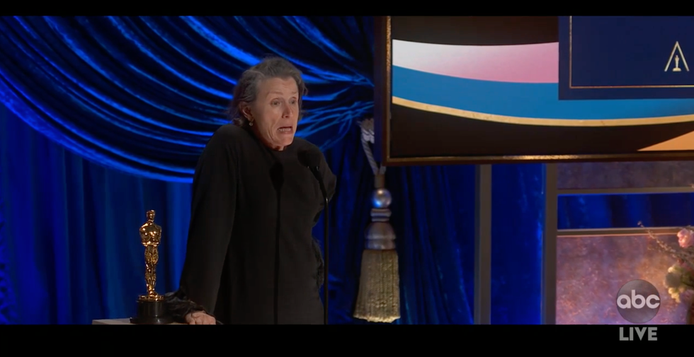 A nice a short speech from Oscar winner for Frances McDormand for Best Actress.