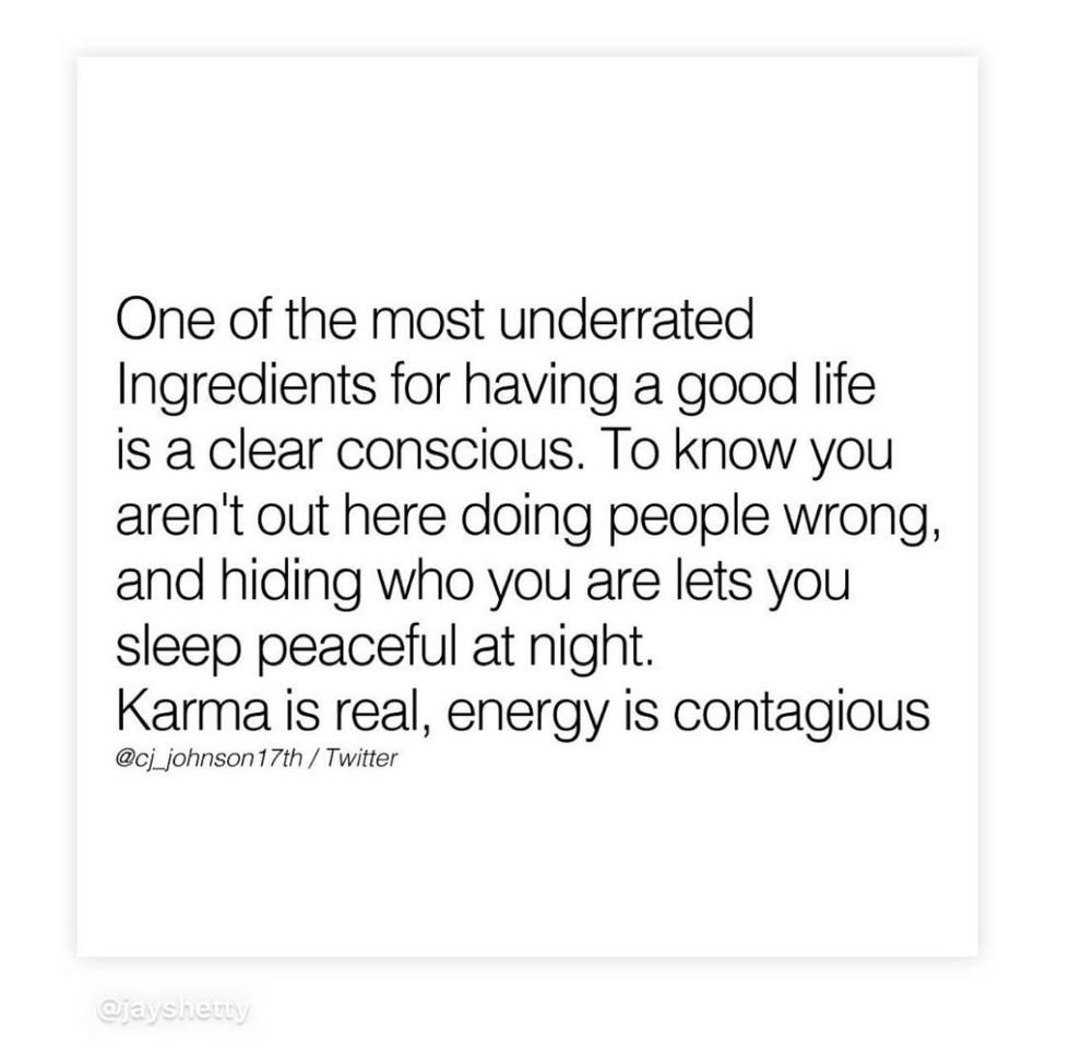"One of the most underrated ingredients for having a good life is a clear conscious,"