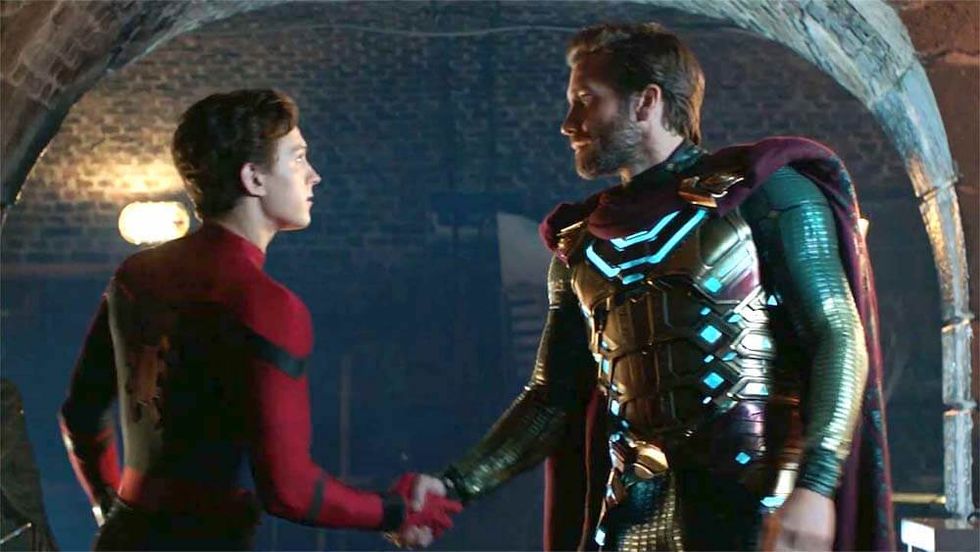 Tom Holland is joined by Samuel L. Jackson as Nick Fury and Jake Gyllenhaal as Mysterio, as well as Peter Parker’s returning classmates Zendaya and Jacob Batalon.
