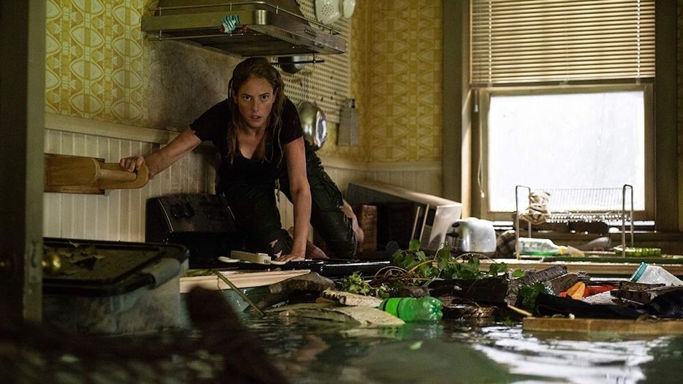 In this horror film, a young woman must search a hurricane-ravaged Florida town for her missing father. Despite the weather-inflicted destruction and rising flood waters, their biggest threat comes from the gigantic alligators who would gladly turn the survivors into snacks.