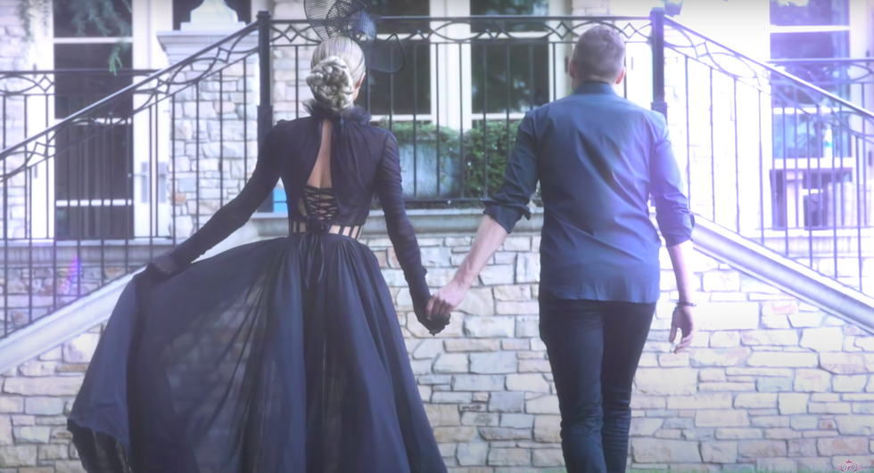 At the end of the music video we see a very romantic scene -- the two can be seen holding hands, walking away together as a bright light surrounds them.