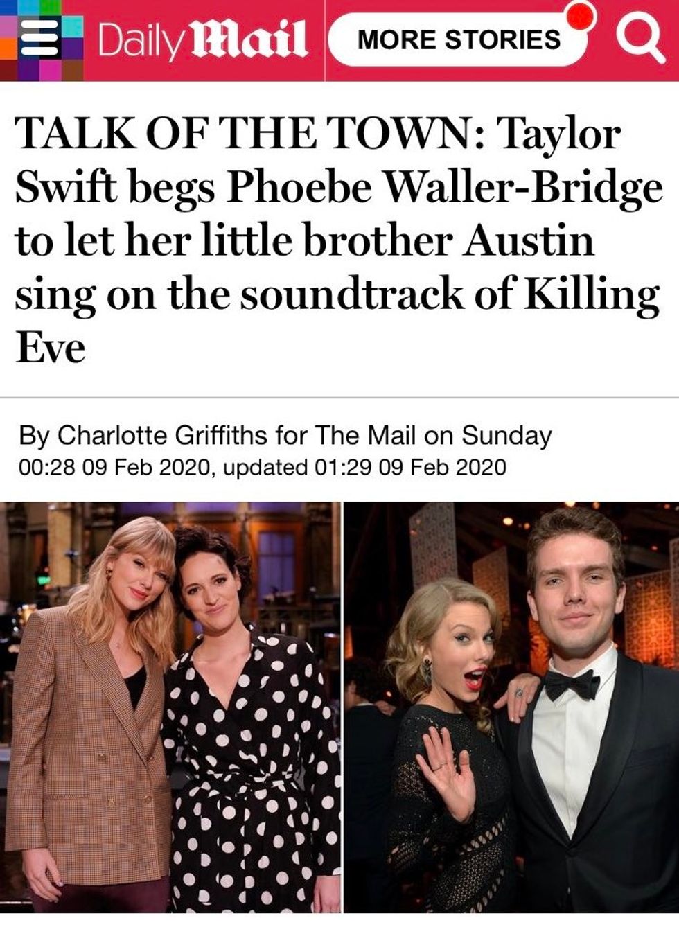 Now who is the mystery man singing? Many signs point to the singer's brother, Austin Swift, who she previously stated she wanted to sing for the Killing Eve soundtrack. Apparently, Austin used "The Dolphin Club" as a Twitter name at one point and dolphins appear in Swift's AT&T commercial in 2016.