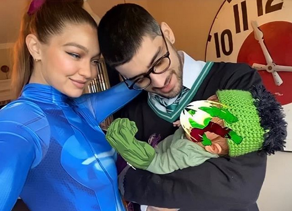 The family celebrated their first Halloween together! Gigi is seen in a gamer costume, while Zayn went for a Slytherin look from Harry Potter. And the grand reveal of their baby girl, who dressed up as Hulk! Their daughter's name has not been revealed, and they also put a Hulk image on top of her face.